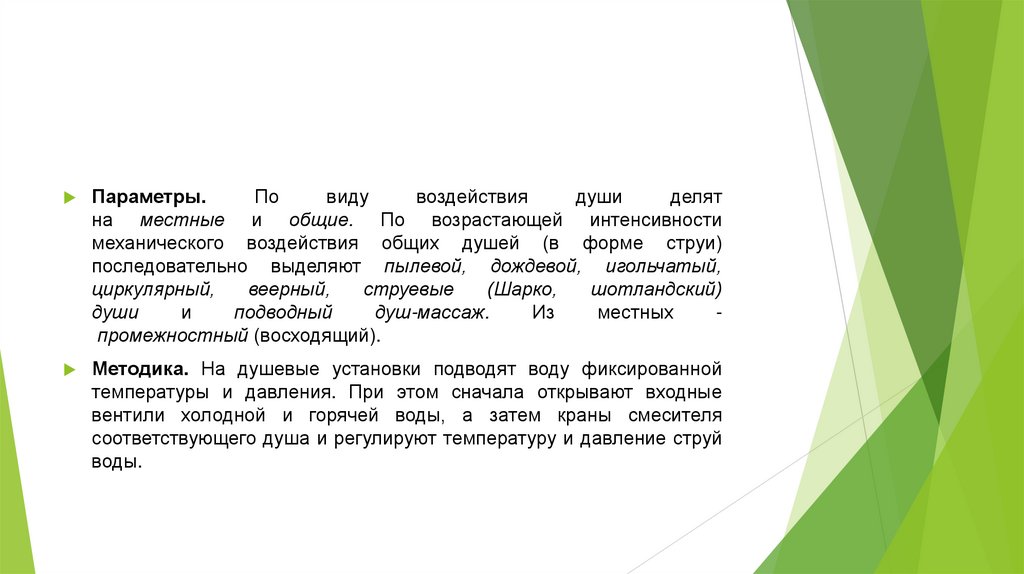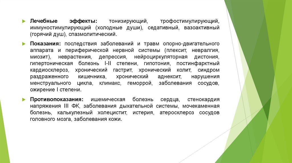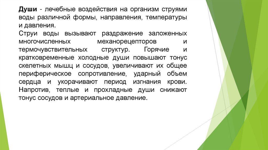 Души - лечебные воздействия на организм струямиводы различной формы, направления, температуры