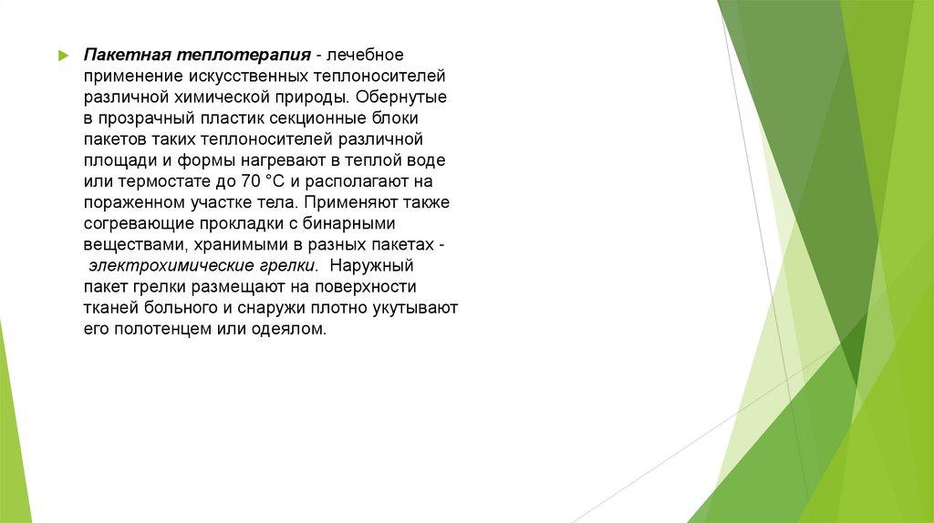 Пакетная теплотерапия - лечебноеприменение искусственных теплоносителей