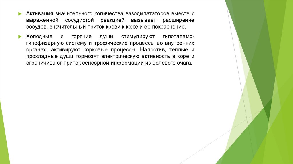 органах, активируют корковые процессы. Напротив, теплые и