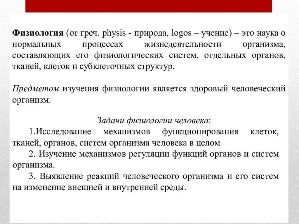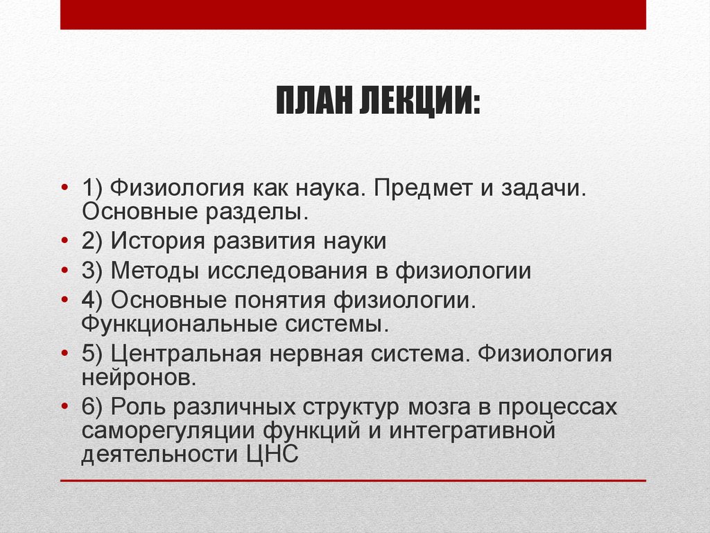 ПЛАН ЛЕКЦИИ:• 1) Физиология как наука. Предмет и задачи.