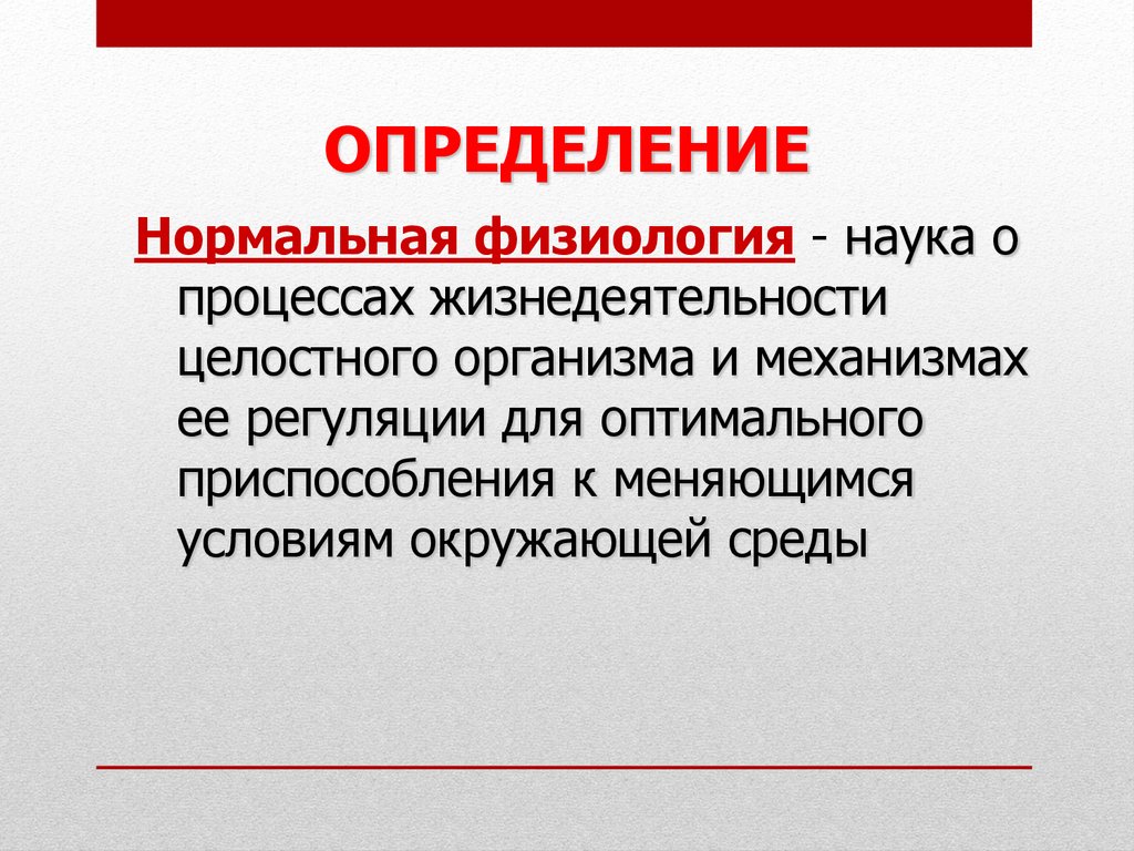 ОПРЕДЕЛЕНИЕНормальная физиология - наука о