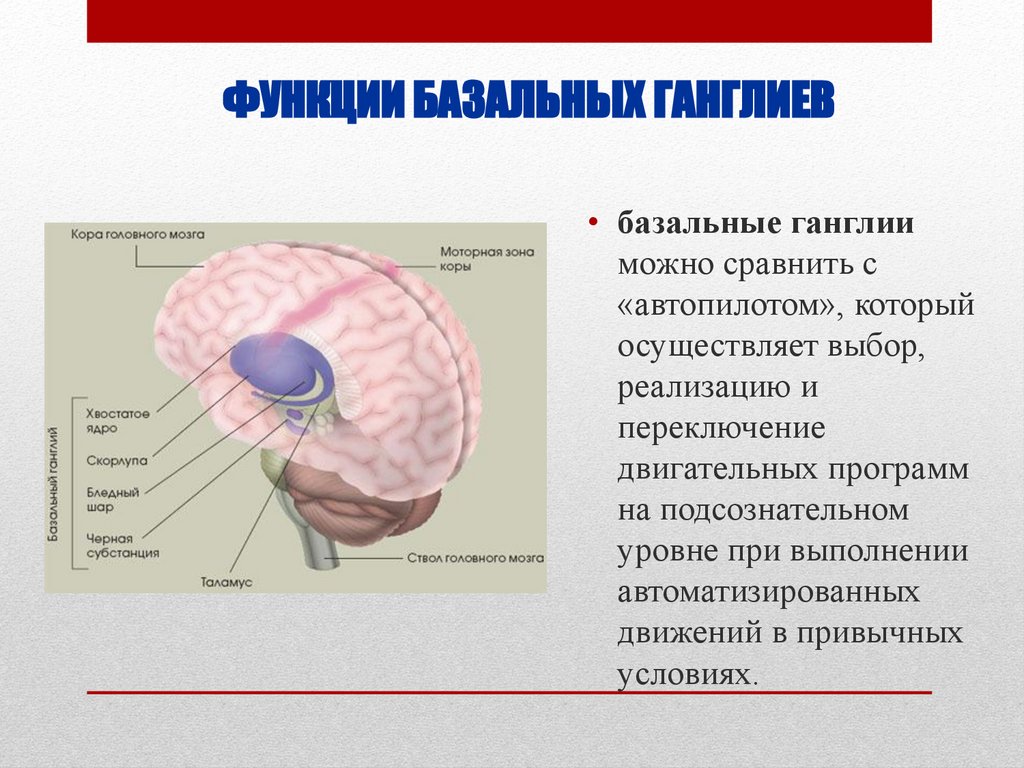 ФУНКЦИИ БАЗАЛЬНЫХ ГАНГЛИЕВ• базальные ганглии