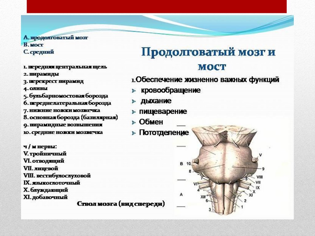 ПРОДОЛГОВАТЫЙ МОЗГ, МОСТ И СРЕДНИЙМОЗГ
