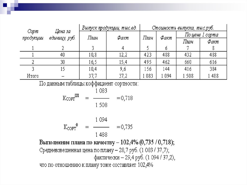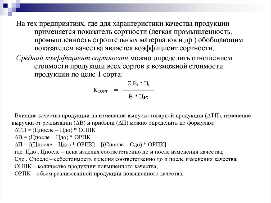 На тех предприятиях, где для характеристики качества продукцииприменяется показатель сортности (легкая промышленность,
