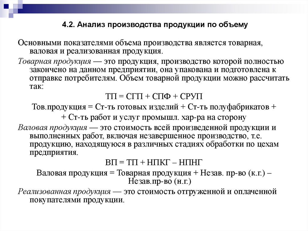 2. Лекция 4. АНАЛИЗ ОБЪЕМА ПРОИЗВОДСТВА И РЕАЛИЗАЦИИ ПРОДУКЦИИ