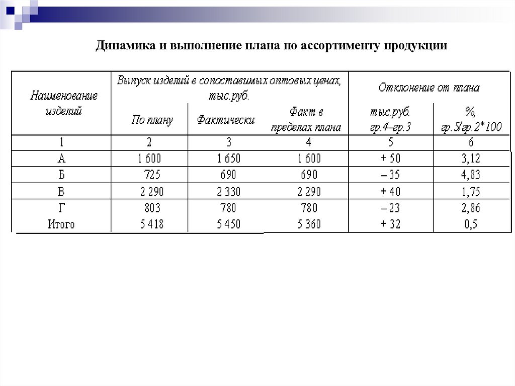 5. 4.3. Анализ производства продукции по номенклатуре и ассортименту