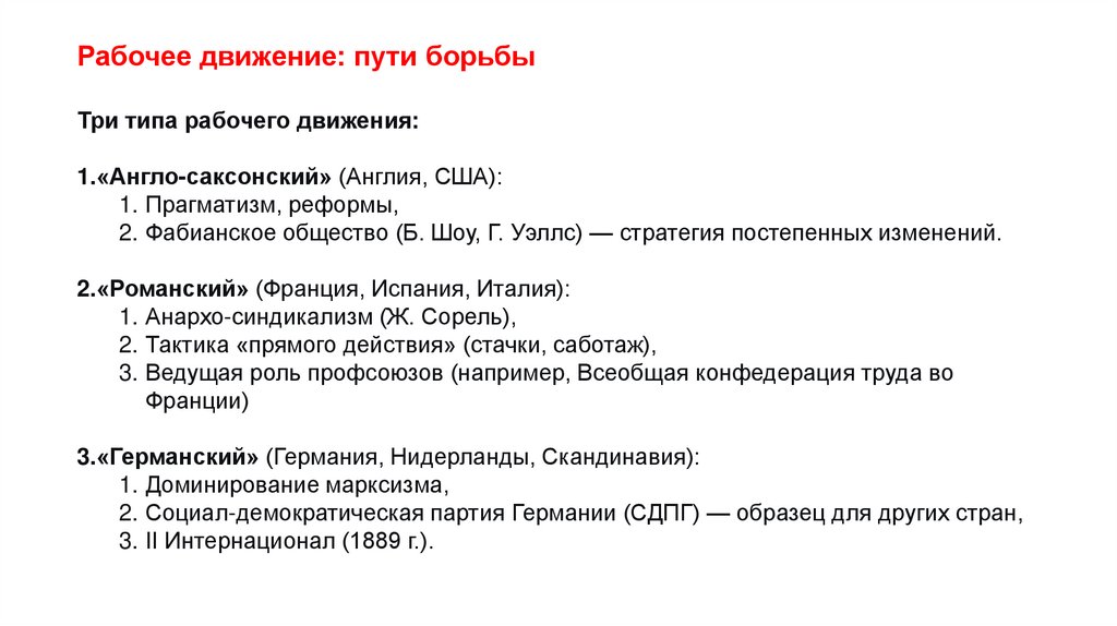 Рабочее движение: пути борьбыТри типа рабочего движения: