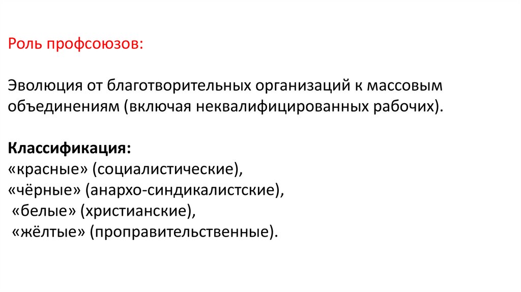 Роль профсоюзов:Эволюция от благотворительных организаций к массовым