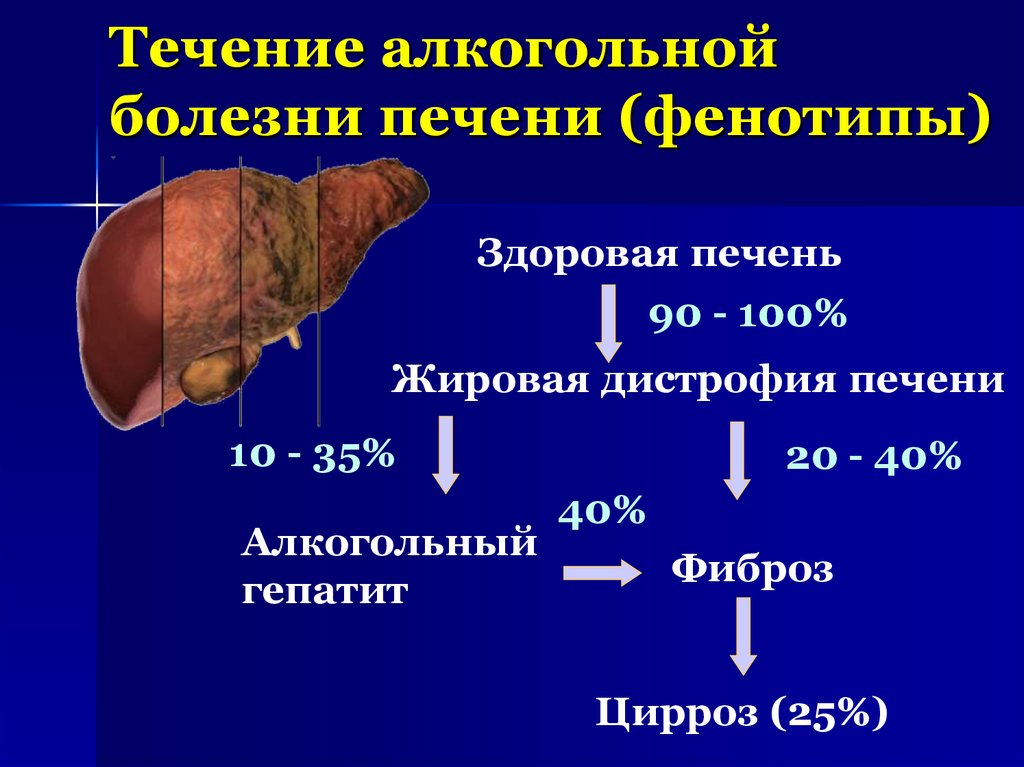вследствие злоупотребления алкоголем от стеатоза до алкогольного гепатита