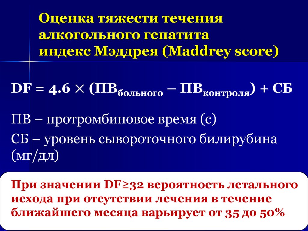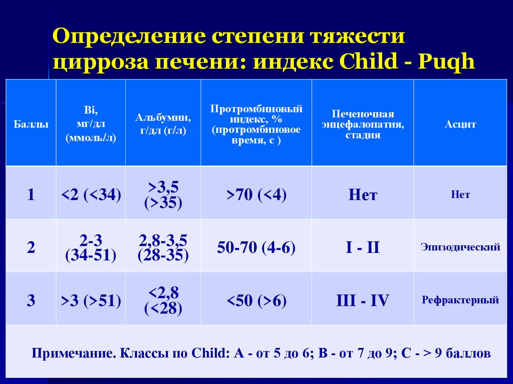 Билирубин > 3 мг/дл + ≥9 баллов по шкале Чайлда-Пью