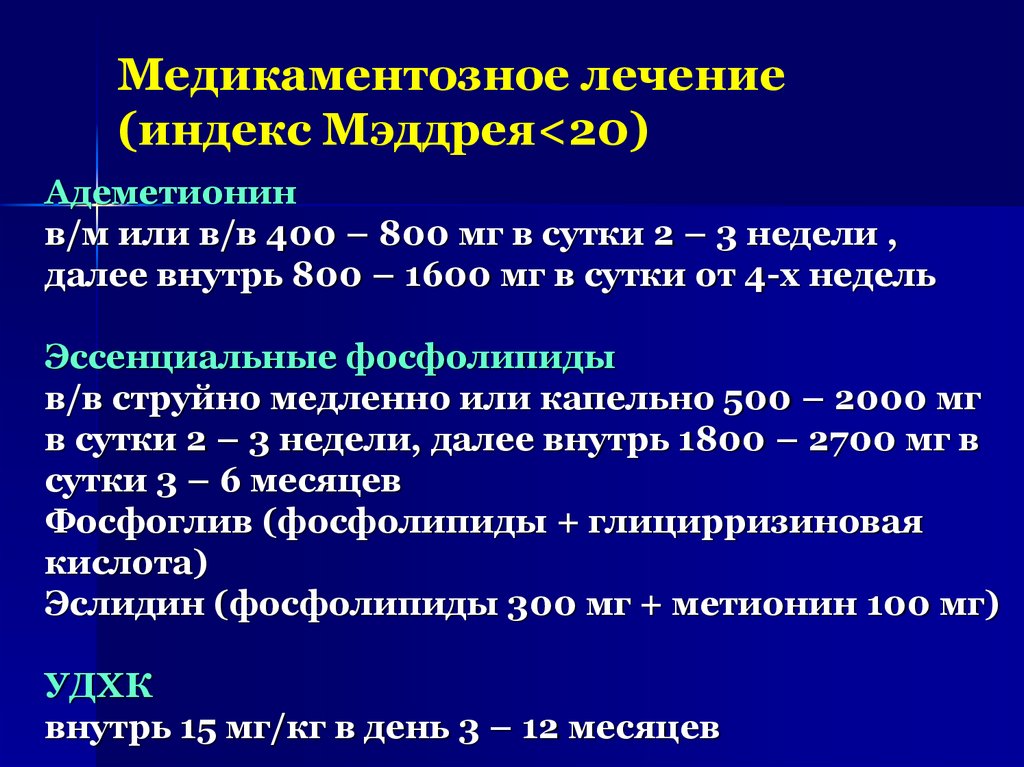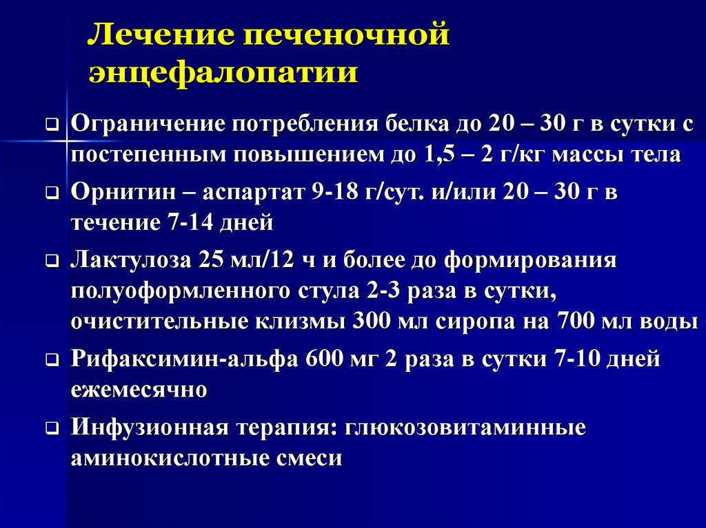 Орнитин – аспартат 9-18 г/сут. и/или 20 – 30 г в