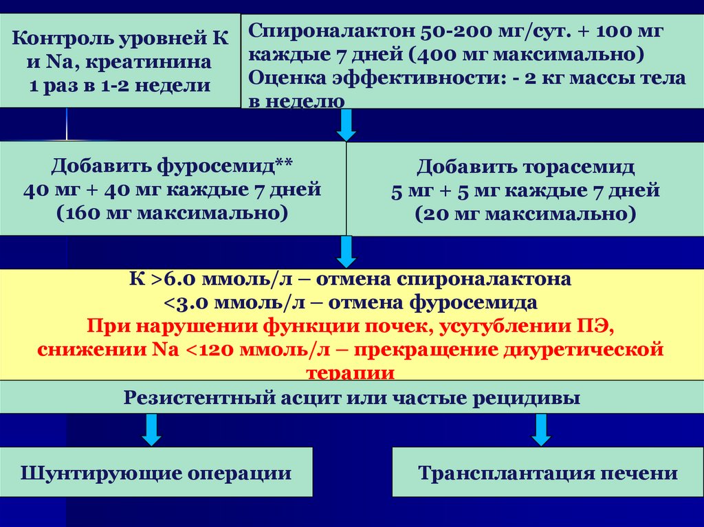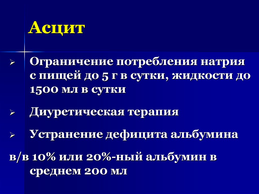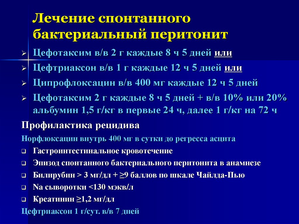 Норфлоксацин внутрь 400 мг в сутки до регресса асцита