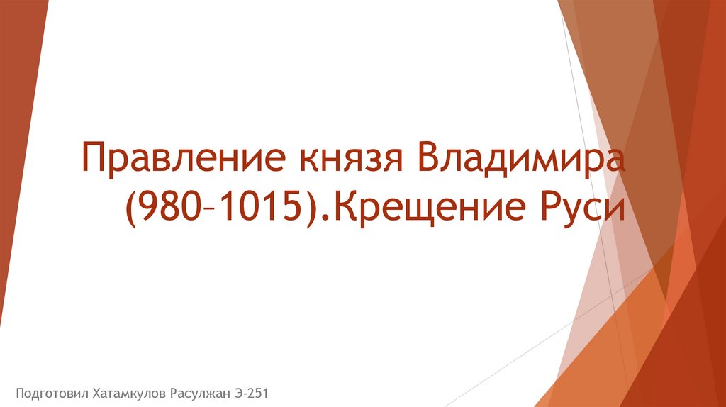 Подготовил Хатамкулов Расулжан Э-2512. Начало правления князя Владимира