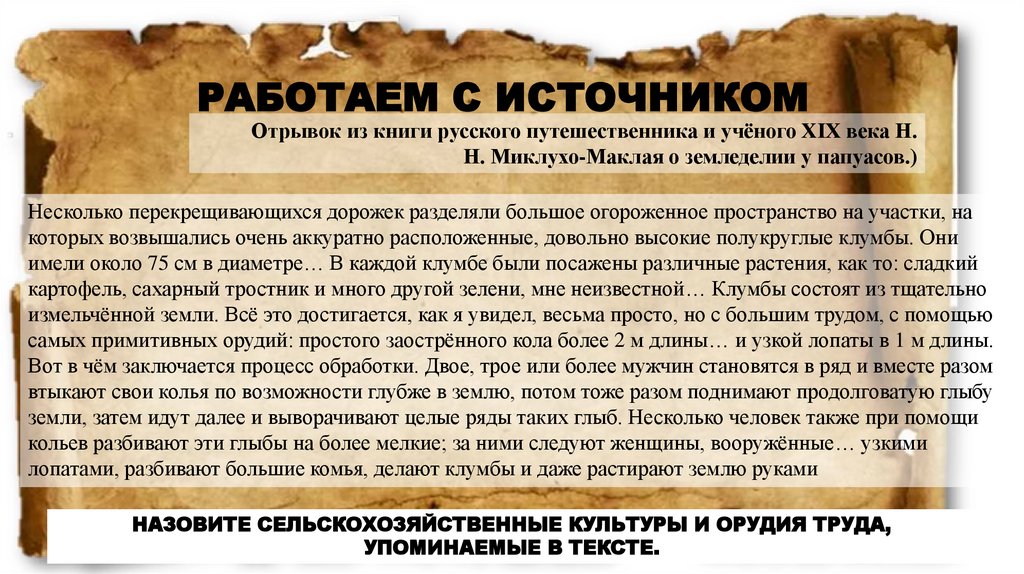 Н. Миклухо-Маклая о земледелии у папуасов.)