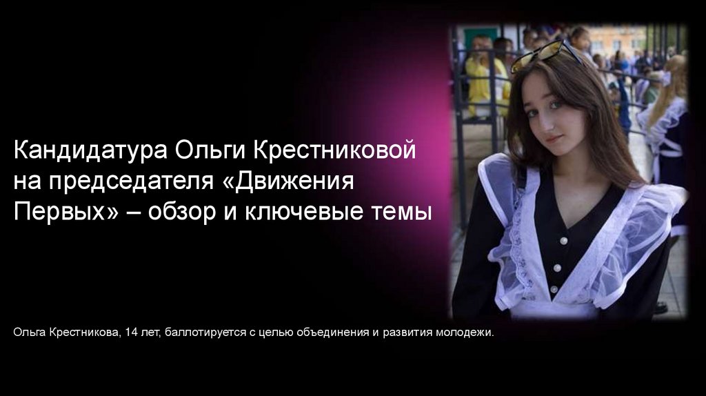Ольга Крестникова, 14 лет, баллотируется с целью объединения и развития молодежи.