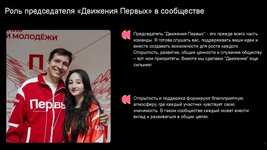 Роль председателя «Движения Первых» в сообществеПредседатель "Движения Первых" - это прежде всего часть
