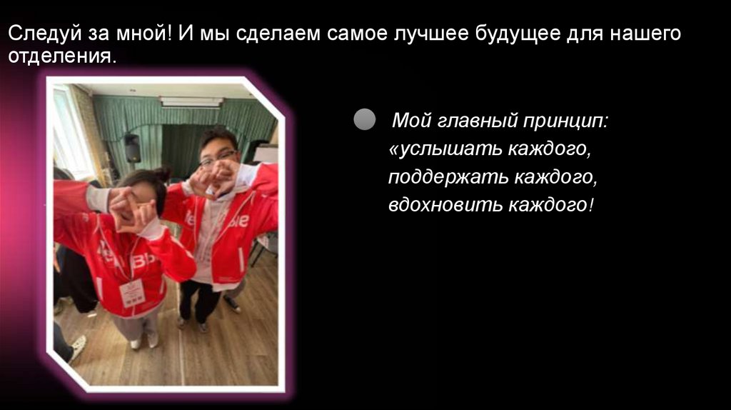 Следуй за мной! И мы сделаем самое лучшее будущее для нашегоотделения.