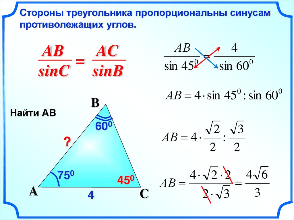 АВ 4 sin 450 : sin 600