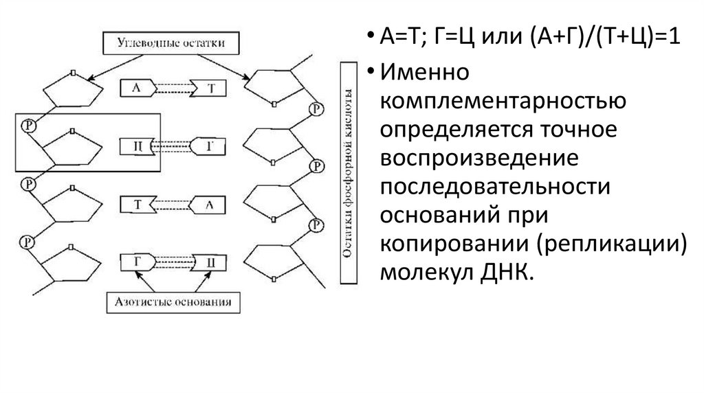 • А=Т; Г=Ц или (А+Г)/(Т+Ц)=1• Именно