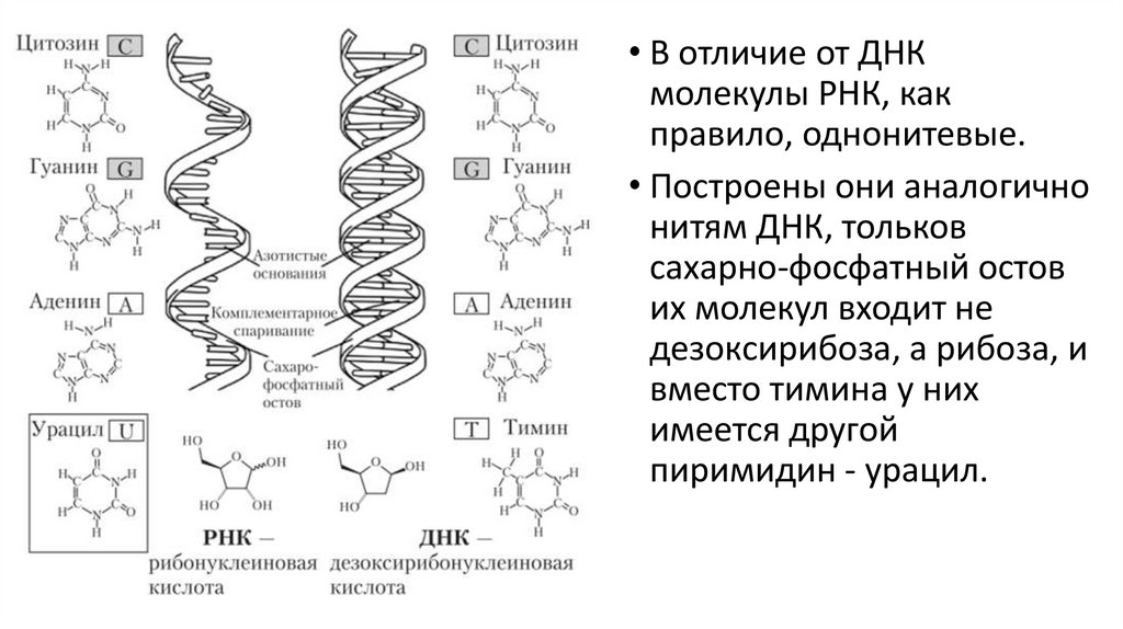 • В отличие от ДНКмолекулы РНК, как