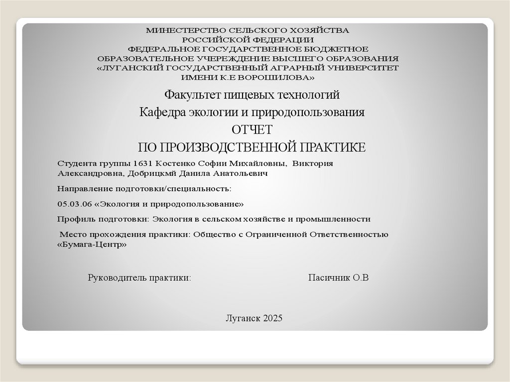 «ЛУГАНСКИЙ ГОСУДАРСТВЕННЫЙ АГРАРНЫЙ УНИВЕРСИТЕТ