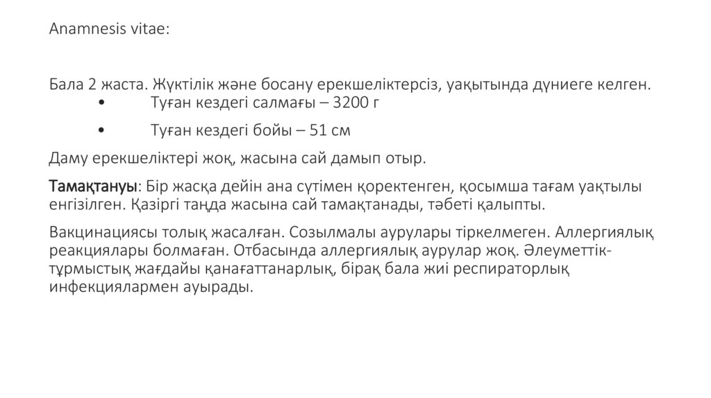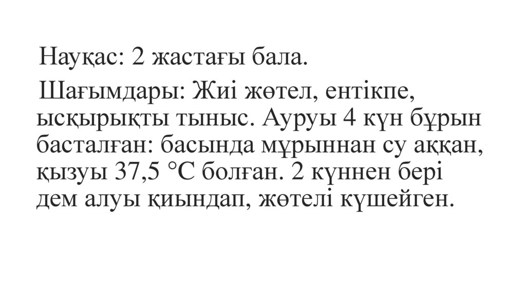 Науқас: 2 жастағы бала.