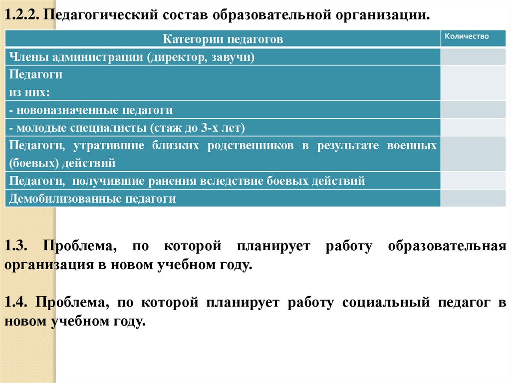 3. Сравнительная таблица кадрового состава социальных педагогов ОУ