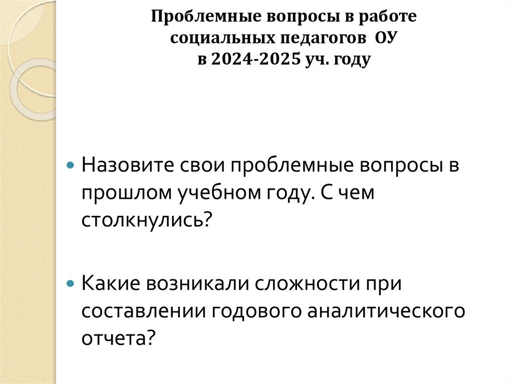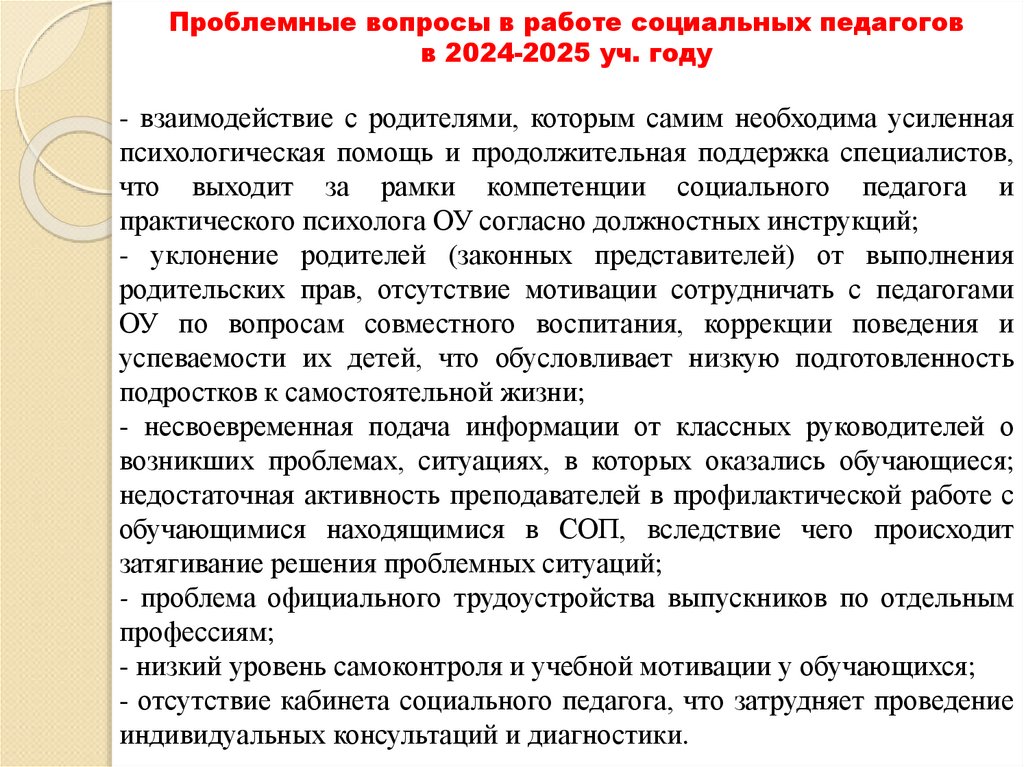 Проблемные вопросы в работе социальных педагоговв 2024-2025 уч. году