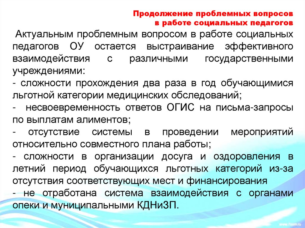 Проблемные вопросы в работесоциальных педагогов ОУ