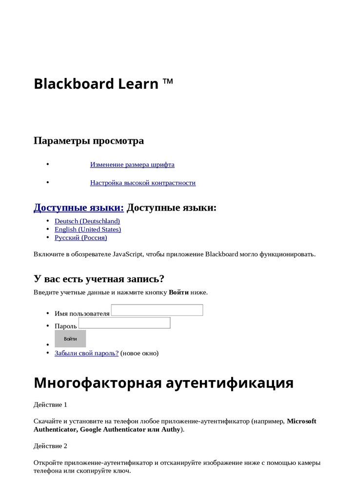 Включите в обозревателе JavaScript, чтобы приложение Blackboard могло функционировать.