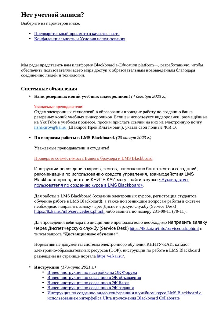 Blackboard преподаватели КНИТУ-КАИ могут найти в курсе <Руководство