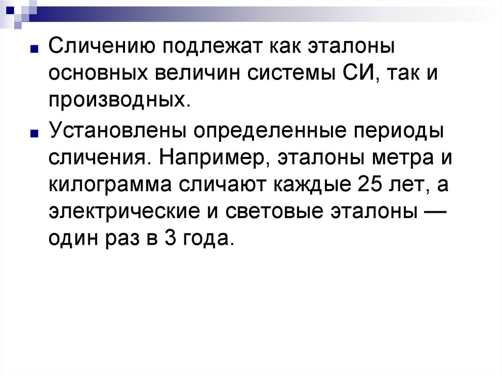 ■ Сличению подлежат как эталоныосновных величин системы СИ, так и