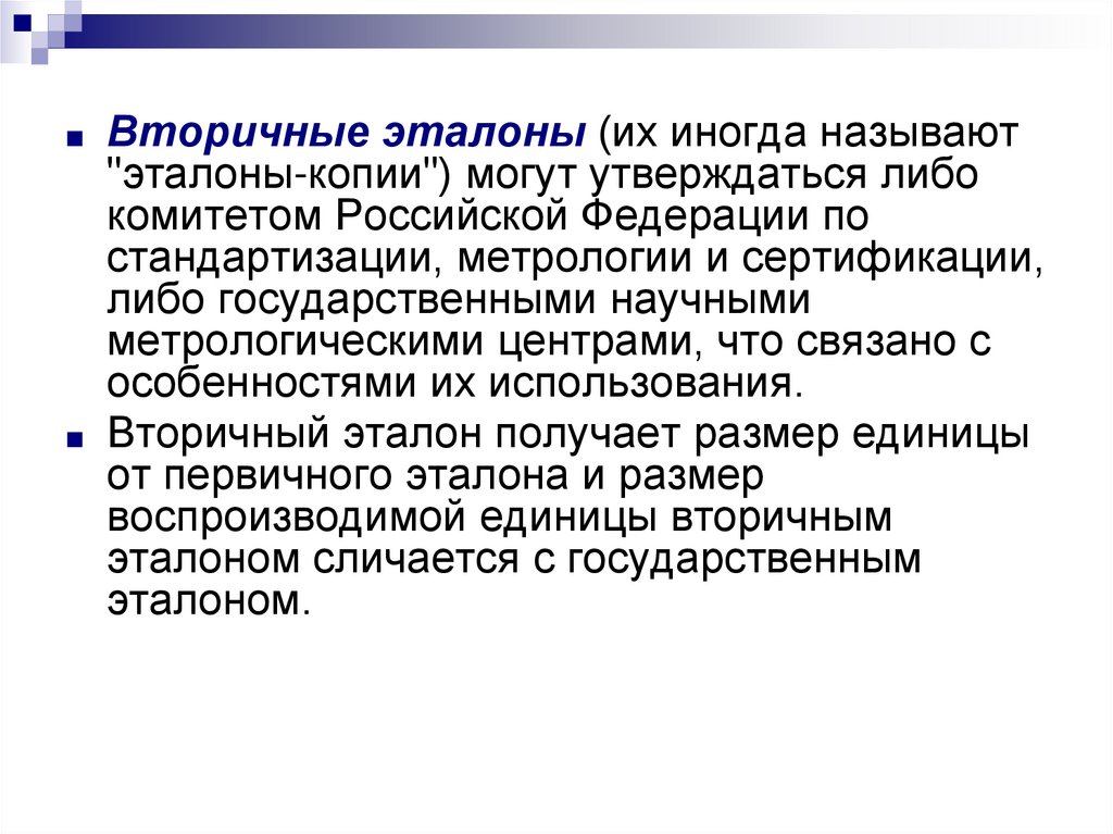 ■ Вторичные эталоны (их иногда называют"эталоны-копии") могут утверждаться либо