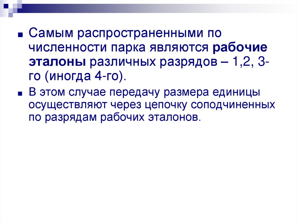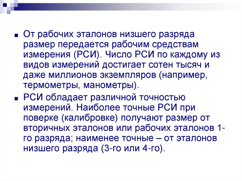 ■ От рабочих эталонов низшего разрядаразмер передается рабочим средствам