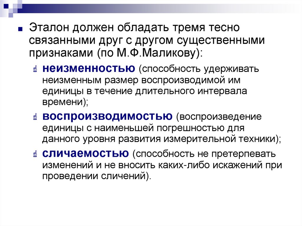 ■ Эталон должен обладать тремя тесносвязанными друг с другом существенными