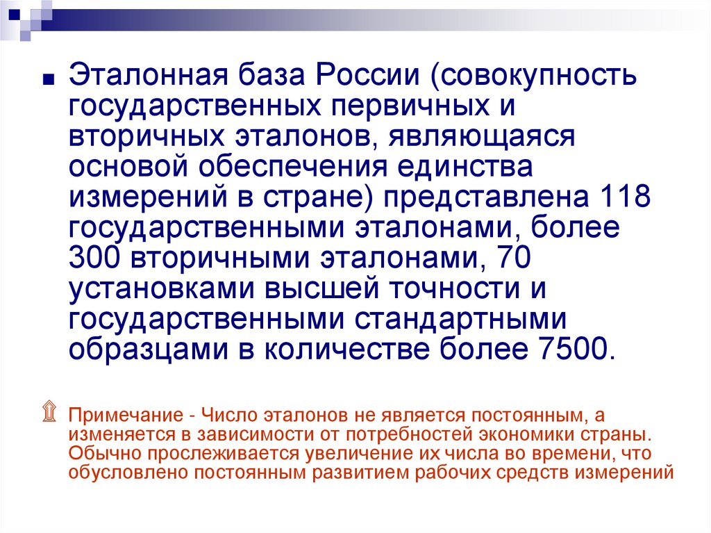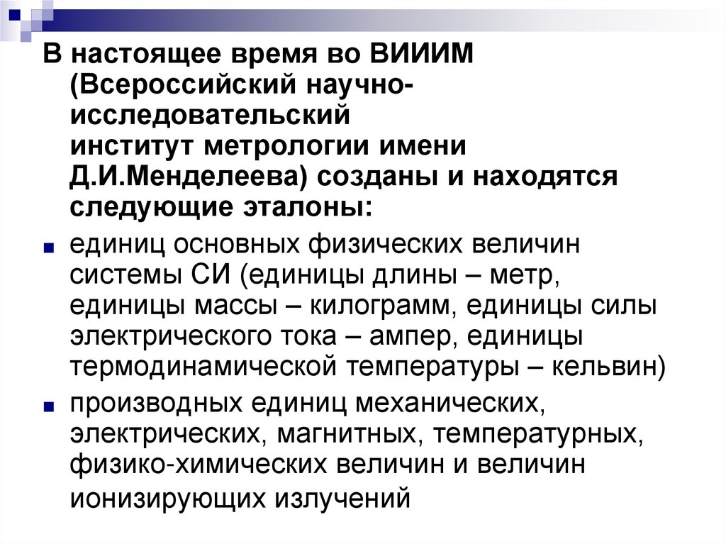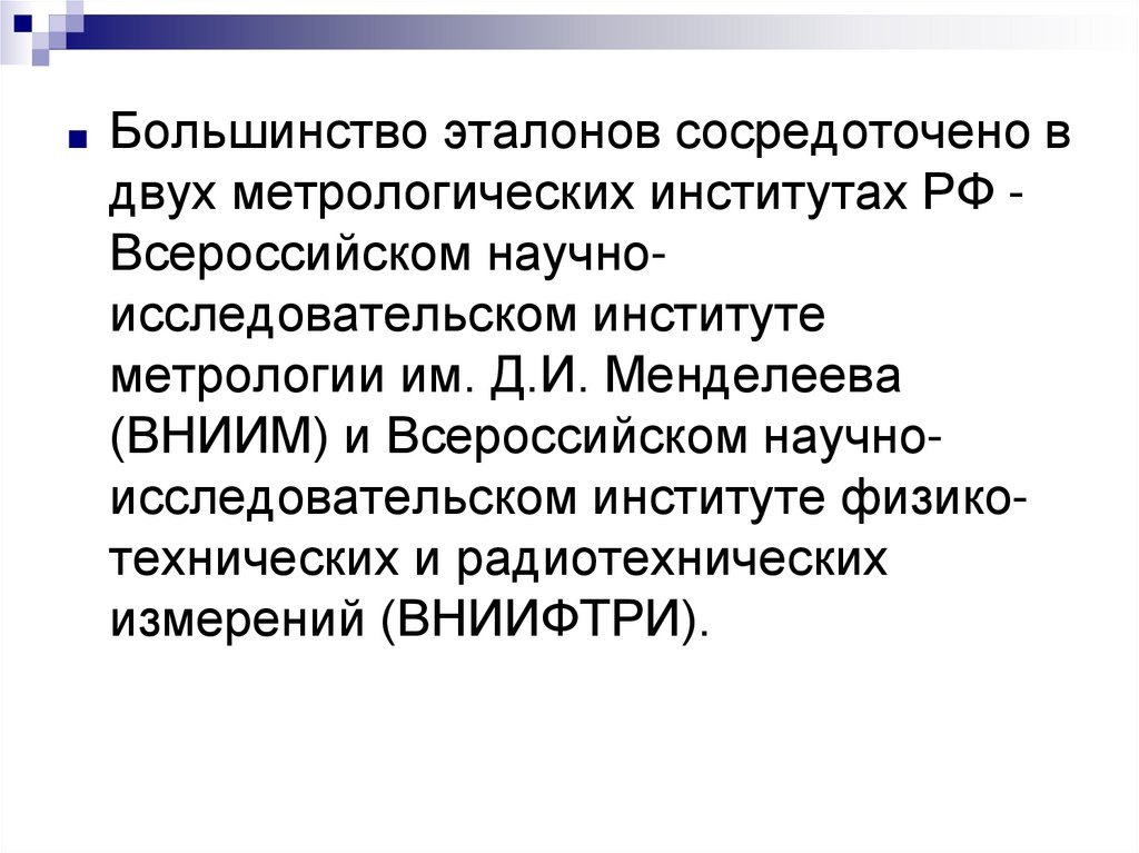 ■ Большинство эталонов сосредоточено вдвух метрологических институтах РФ Всероссийском научноисследовательском институте