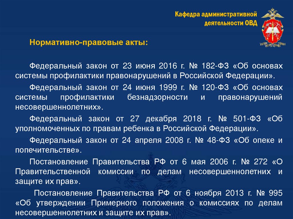 Федеральный закон от 24 июня 1999 г. № 120-ФЗ «Об основах