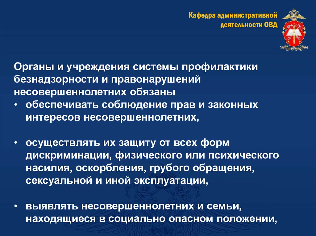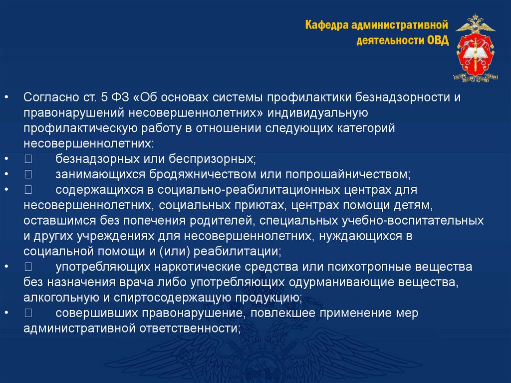 Согласно ст. 5 ФЗ «Об основах системы профилактики безнадзорности и