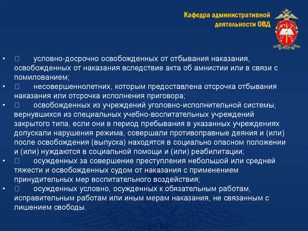 освобожденных от наказания вследствие акта об амнистии или в связи с