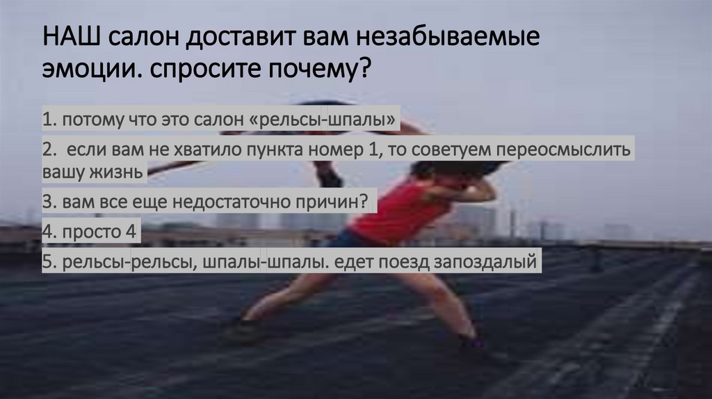 1. потому что это салон «рельсы-шпалы»