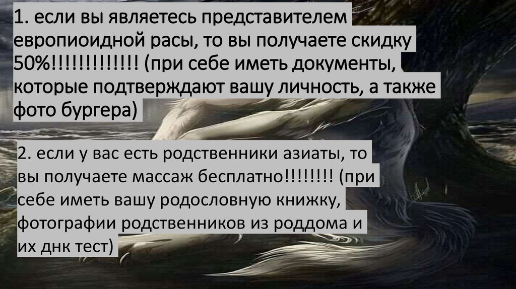 1. если вы являетесь представителемевропиоидной расы, то вы получаете скидку