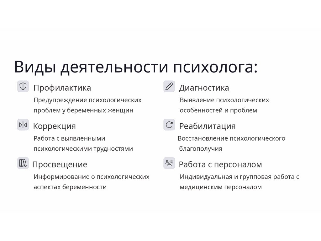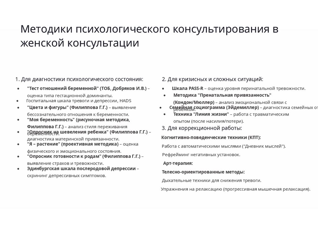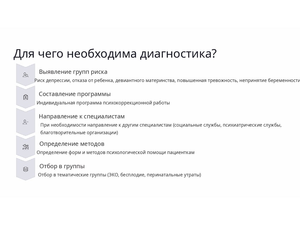 ✓ консультирования женщин в состоянии репродуктивного выбора