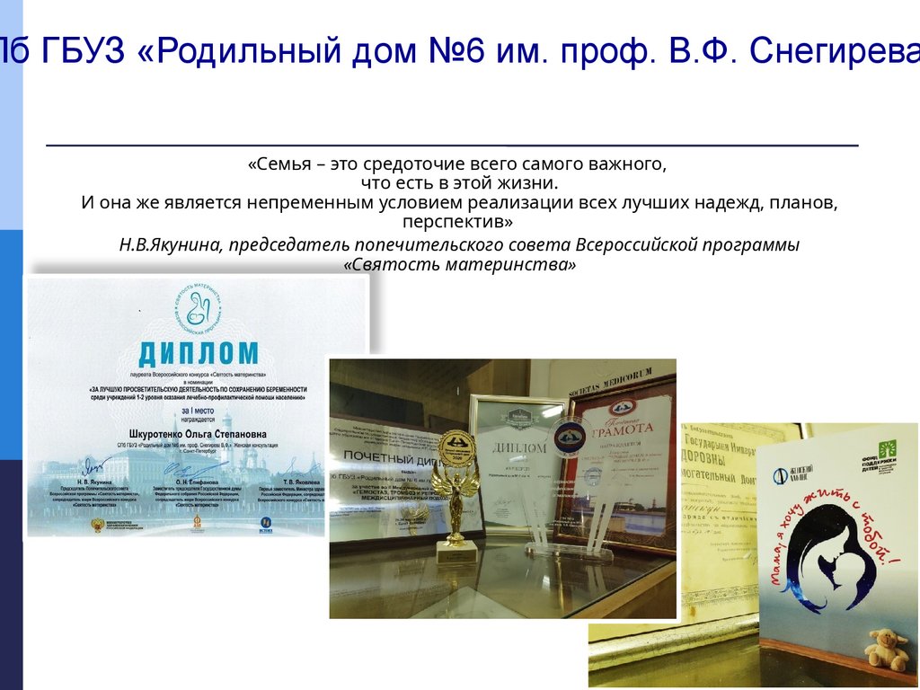 Пб ГБУЗ «Родильный дом №6 им. проф. В.Ф. Снегирева«Семья – это средоточие всего самого важного,
