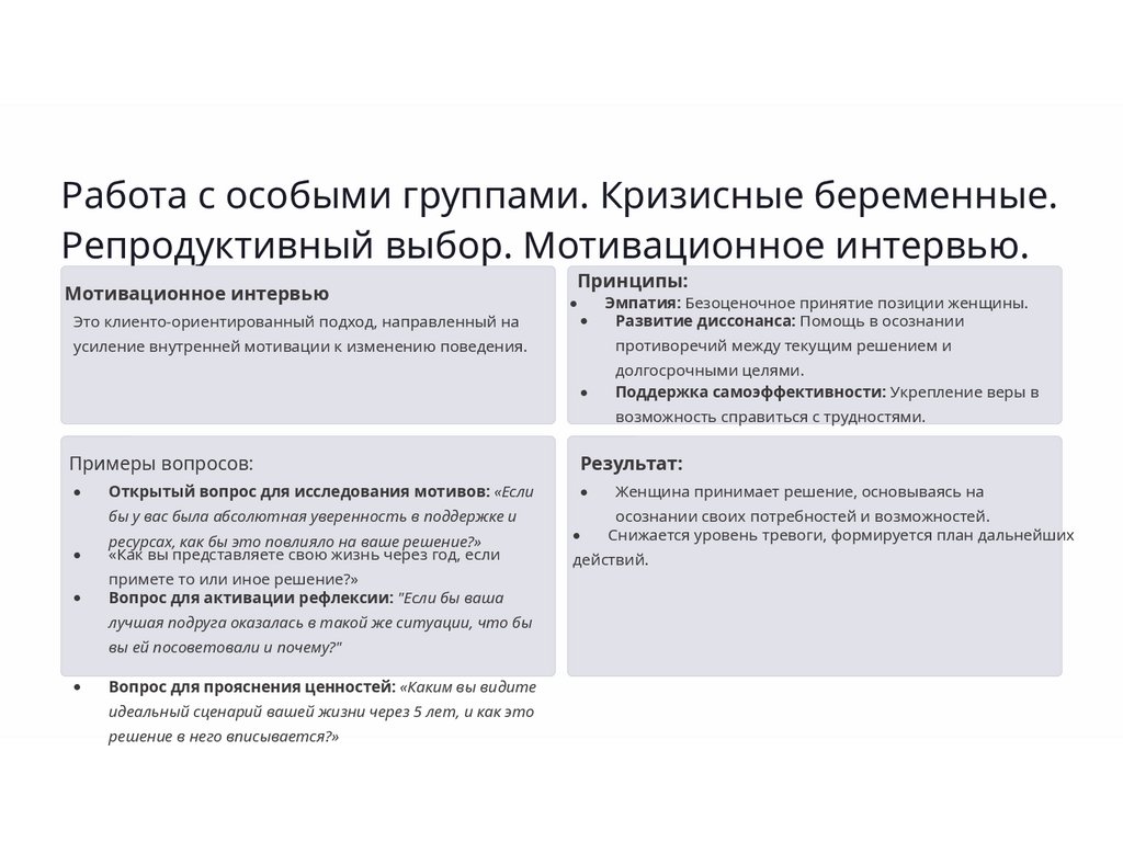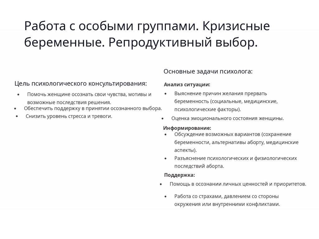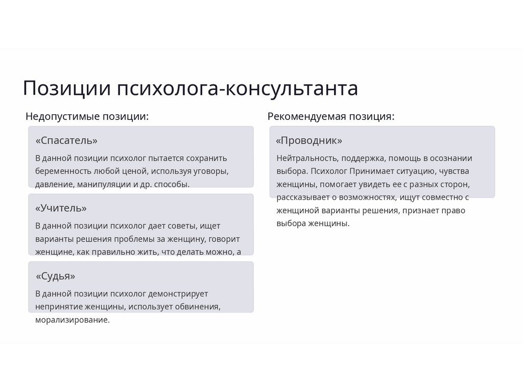 информирование о вреде аборта, о внутриутробном развитии, сопоставляет состояние