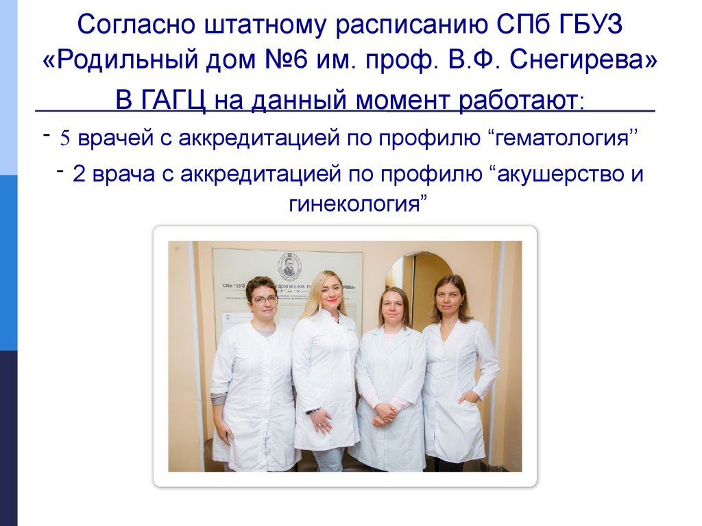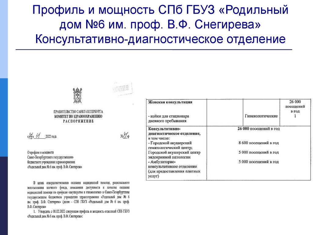 Согласно профилю и мощности СПб ГБУЗ «Родильный дом №6 им.