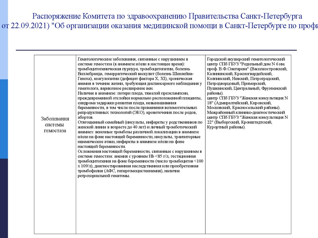 Согласно Распоряжению Комитета по здравоохранению Правительства