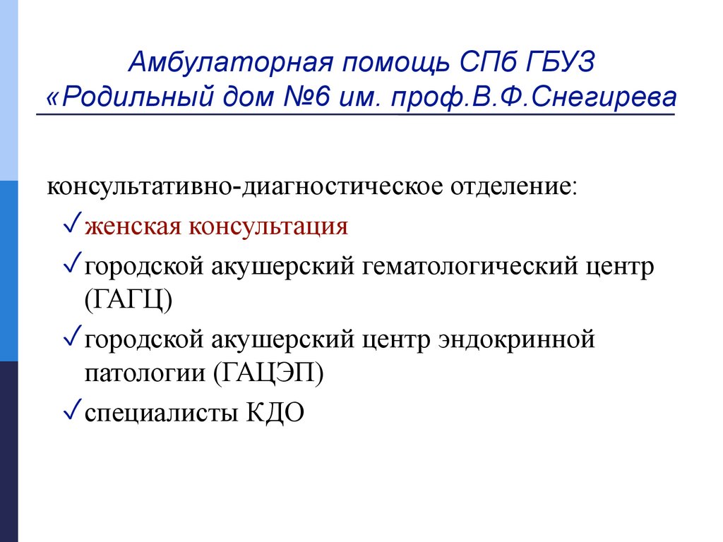 Амбулаторная помощь СПб ГБУЗ«Родильный дом №6 им. проф.В.Ф.Снегирева