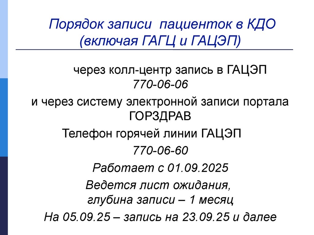 Порядок записи пациенток в КДО(включая ГАГЦ и ГАЦЭП)