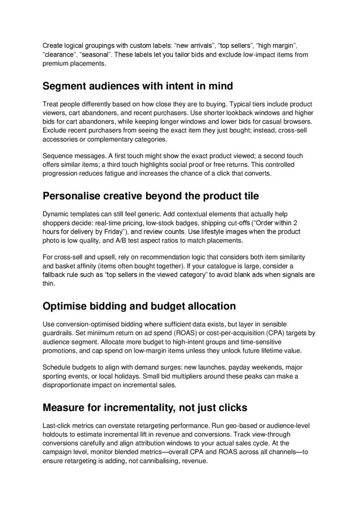 exercises to build, analyse, and scale high-performing retargeting programmes.