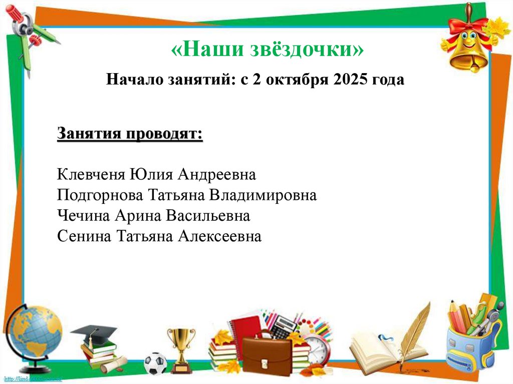 «Наши звёздочки»Начало занятий: c 2 октября 2025 года